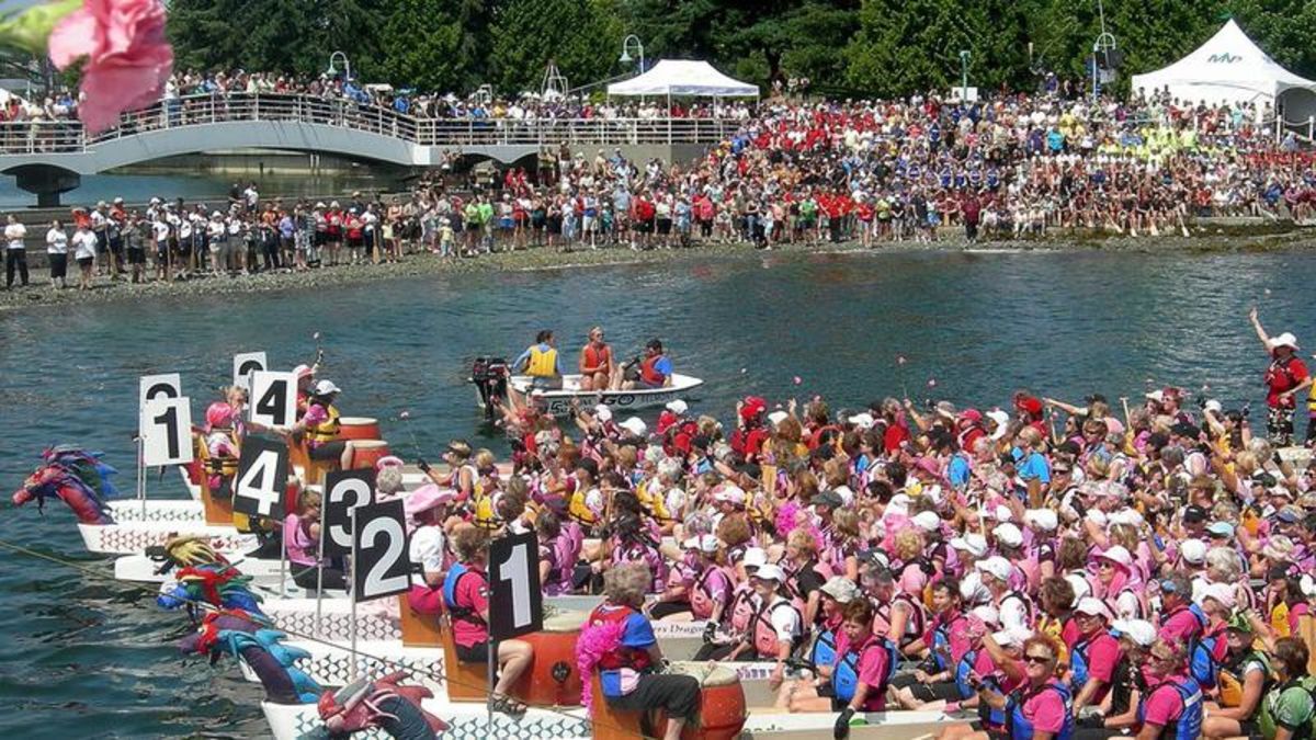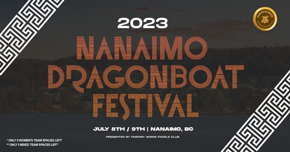 Nanaimo Dragon Boat Festival. Saturday, July 8, 2023 8:00 a.m. Sunday, July 9, 2023 4:00 p.m. This weekend of 500 M racing includes Women's and Mixed categories. Everyone is guaranteed 4 races, weather permitting. Breast Cancer Survivorship. FGPC's Nanaimo Dragon Boat Festival preparations include special recognition for breast cancer.